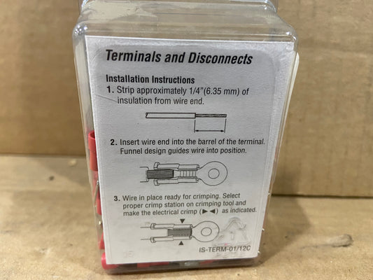 Terminales de horquilla de bloque de calibre 18 a 22 AWG, n.° 8, vinilo. *Se vende en paquetes de 100*