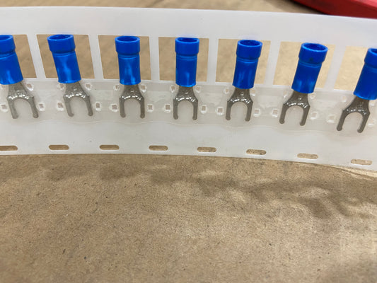 Terminal de horquilla de bloqueo de alimentación automática, perno n.° 10, calibre 18-14 AWG, 600 voltios** Se vende por caja de 850**"
