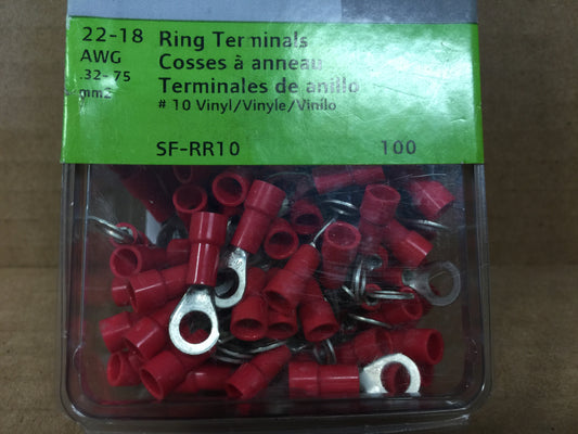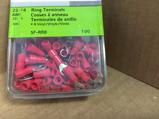 Terminales de anillo de 22 a 18 AWG, perno prisionero n.° 8, paquete de 100