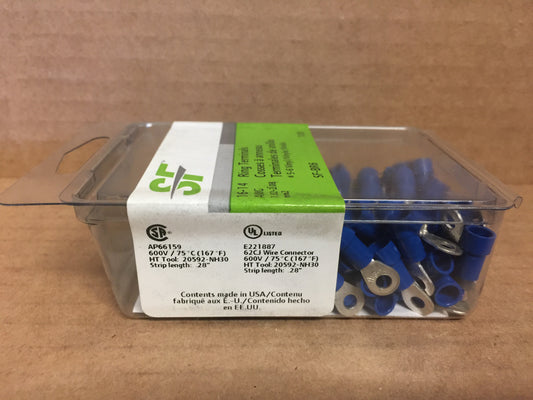 Terminales de anillo; 16-14 AWG, n.° 6, se venden en paquetes de 100