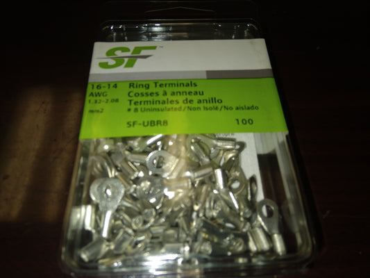 Terminales de anillo n.° 8 de calibre 16 a 14 AWG (100 por paquete)