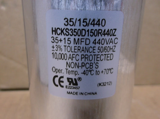Condensador de funcionamiento doble redondo de 35+15 MFD x 440 V CA