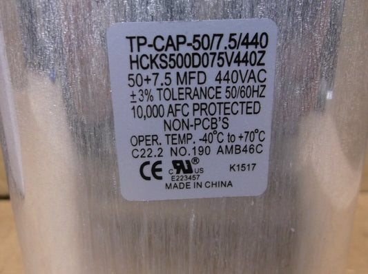 Condensador de funcionamiento doble ovalado de 50+7,5 MFD x 440 V CA