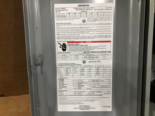 Interruptor de desconexión de 200 amperios y 600 voltios