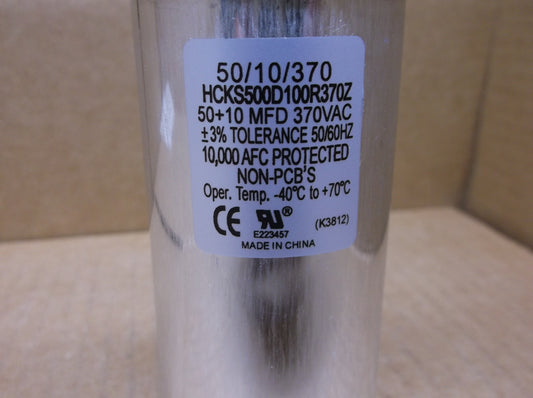 Condensador de funcionamiento doble redondo de 50+10 MFD x 370 V CA