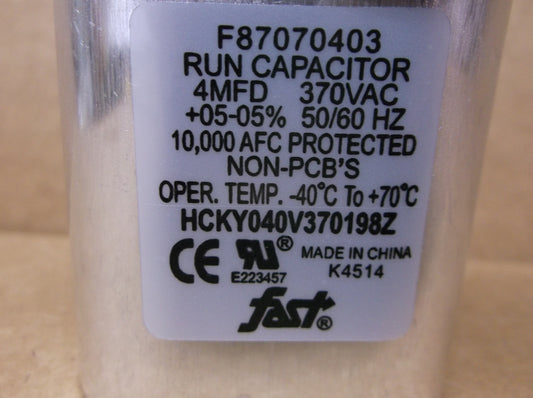 Condensador de funcionamiento ovalado de 4 MFD x 370 V CA