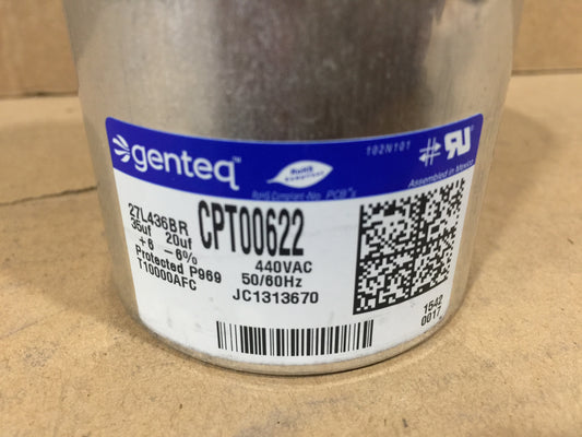 Condensador; Compresor, funcionamiento en CA circular, 40 UF, 450 V CA, 50/60 Hz