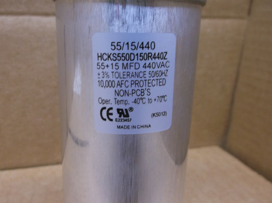 Condensador de funcionamiento doble redondo de 55+15 MFD x 440 V CA