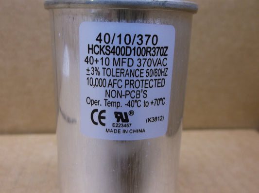 Condensador de funcionamiento doble redondo de 40+10 MFD x 370 V CA
