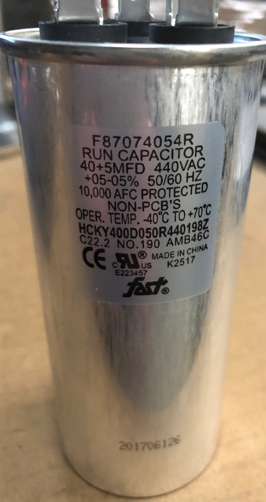 Condensador de funcionamiento doble redondo de 40+5 MFD x 440 V CA