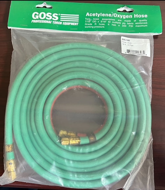 Proveedor: gossManguera de 12 pies, tamaño de conexión 1-2: 3/16, presión: 200 PSI, tipo de soplete: acetileno,
