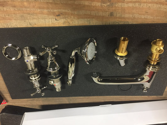 Grifo para bañera de dos manijas Randall con ducha de mano y manijas en cruz