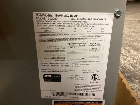 3 Ton AC/HP Multiposition ECM Air Handler 208-230/60/1 R-410A CFM 1530 15 SEER