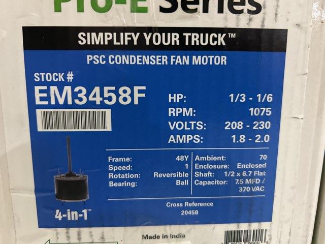 1/3-1/6 HP Fan Motor, Volts: 208-230, Hertz: 60, Phase: 1, Rpm: 1075, Speed: 1, Motor Type: PSC, Amps: 1.8-2, Frame: 48, Bearing: Ball, Rotation: Reversible, Shaft: Single, Mounting: Belly Band, Weight: 12.1 Lbs