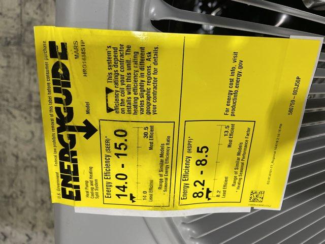 1.5 Ton Split System Heat Pump, Volts:208/230, Hertz:60, Phase:1, Department Of Energy Guide Seer:14, Stage:1, Refrigerant:R-410A, Connection Size:3/8" X 3/4", Connection Type:Sweat, Factory Charge:6 Lbs 10 Oz, Type: Air, Dimensions:431/4"H X 281/4"W X 281/4"D, Weight:182 Lbs, Made In Mexico **Factory Warranty Through 2029** **All Units Have Minor Cosmetic Damage**