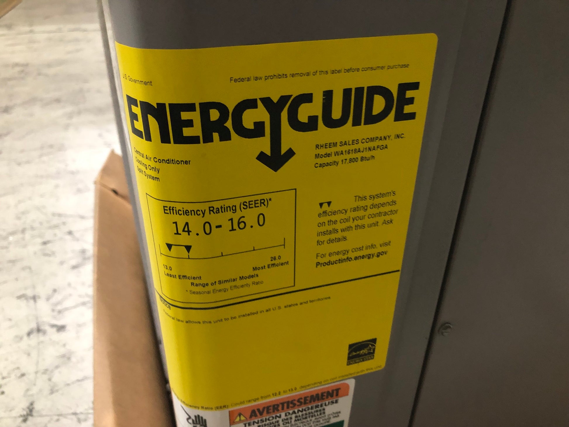 Aire acondicionado de sistema dividido de 1,5 toneladas, voltaje del circuito: 208-230, Hertz: 60, fase: 1, guía del Departamento de Energía SEER: 16, EER: 13, etapa: única, refrigerante: R410A, tamaño de la conexión: 3/8" X 3/4", tipo de conexión: condensada, carga de fábrica: 80,9 oz, tipo: aire, dimensiones: 24,25" de alto x 27,63" de ancho x 27,63" de profundidad, peso: 150 libras ***La unidad incluye una garantía del fabricante. Registre su unidad con el fabricante para obtener más detalles***