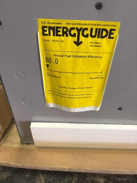 125,000 BTU Upflow/Horizontal Gas Furnace, Efficiency: 80%, Volts: 115, Hertz: 60, Phase: 1, CFM: 1934, Stage: Single, Speed: Multi, Motor Type: ECM, BTU Input: 125,000, BTU Output: 100,000, Dimensions: 34''H X 24-1/2''W X 29-19/32''D, Weight: 143.5 lbs ***Propane Conversion Kit: RXGJ-FP15 (Not Included)***