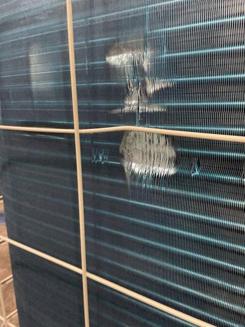 **DENTING IN VARIOUS SPOTS AROUND UNIT, MINOR COIL DAMAGE**