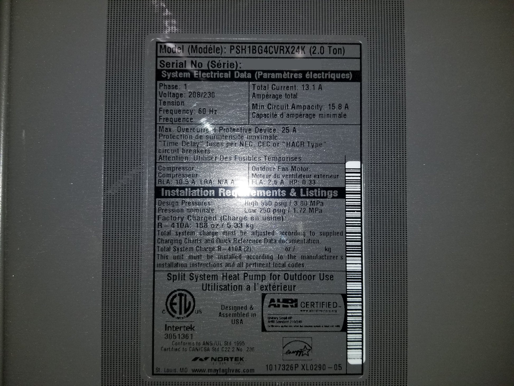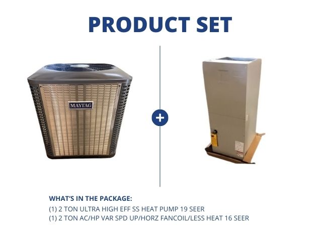 2 Ton AC/HP Variable Speed Fancoil/Less Electric Heat, Volt:208/230, Hertz:60, Phase:1, Motor Type:ECM, Airflow:Upflow/Horizontal, CFM:1600, SEER:16, Heat;None, Metering Device:TXV, Refrigerant:R-410A, Line Connection:3/8" X 7/8" Sweat, Supply Dims:18-1/4"W X 12-7/8"D, Dims:49-1/2"H X 20"W X 22"D, Weight:120 Lbs, In Mfg Box, Made In USA. (Approved Electric Heat Kits:H6HK005H,H6HK008H,H6HK009Q,H6HK010H (Not Included)(Alt 185032) Requires Downflow Kit 919321 - Not Included)