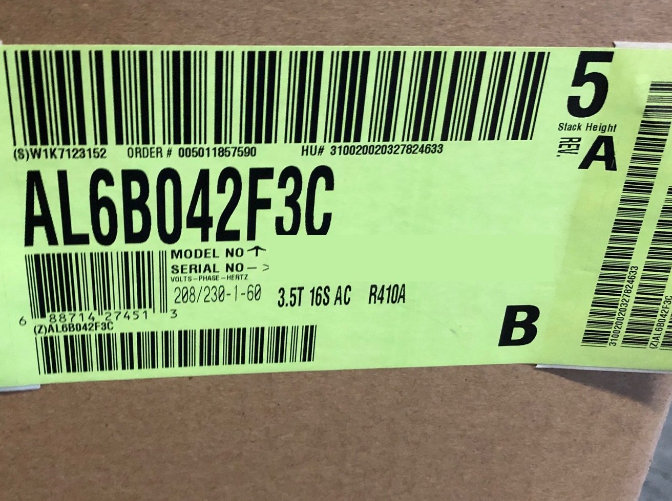 208/230, Hertz: 60, Fase: Única, Tipo de motor: ECM, Amperaje mínimo del circuito: 23,7, Tamaño máximo del fusible: 40, Conexión de líquido: 3/8", Accesorio de succión: 7/8", Tipo de conexión: Soldada, Refrigerante: R-410A, Capacidad de comunicación, Ancho: 31", Alto: 40", Profundidad: 37", Peso: 209 lb, En caja de fabricación, Fabricado en