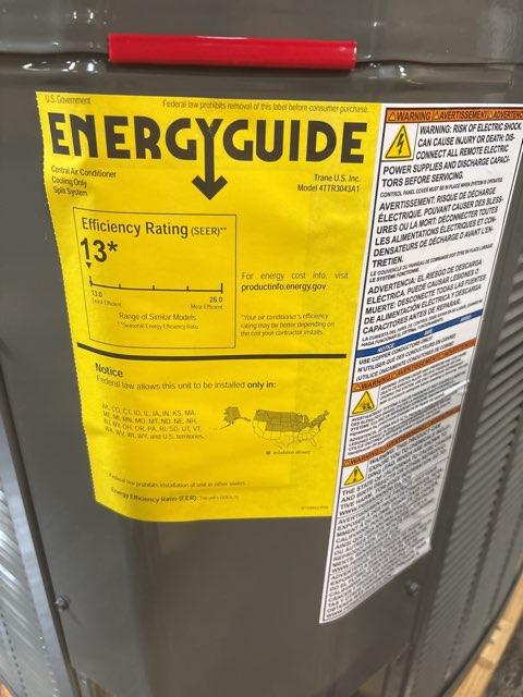 3/8"X7/8", Connection Type: Sweat, Factory Charge: 6 lbs 7 oz, Type: Air, Dimensions: 29-1/8''H x 37-1/4''W x 34-1/4''D, Weight: 184 lbs ***Unit includes a Manufacture Warranty, register your unit with the Manufacturer for details***