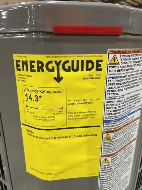 3.5 Ton Single Stage Split-System Air Conditioner, Circuit Voltage: 208-230, Hertz: 60, Phase: 1, Department of Energy Guide SEER2: 14.3, Stage: Single, Refrigerant: R410A, Connection Size: