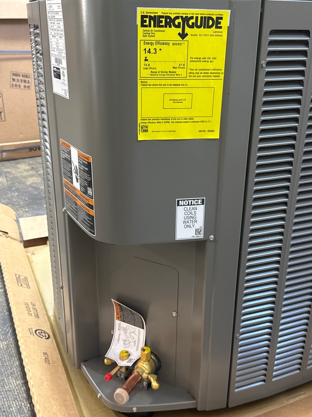 3/8"X7/8", Connection Type: Sweat, Factory Charge: 9 lbs 2 oz, Type: Air, Dimensions: 35''H x 35-1/2''W x 39-1/2''D, Weight: 260 lbs