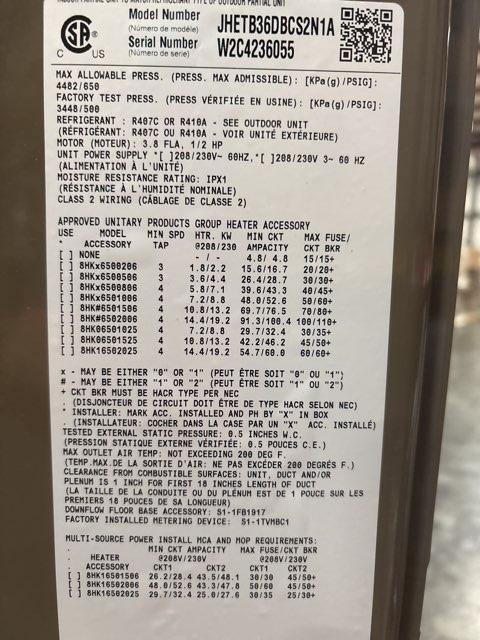 3 Ton AC/HP Air Handler, Airflow: Multiposition, Volts: 208-230, Hertz: 60, Phase: 1, CFM: 1500, Refrigerant: R-410A, Motor Type: ECM, Metering Device: TXV, Connection Size: Suction-3/4", Liquid-3/8", Type: Air Source, Dimensions: 49-5/8''H X 17-1/2''W X 21-7/16''D, Weight: 100 lbs ***Compatible Heat Kits: 8HK(0,1)650(02-10)06, 8HK(1,2)65(015-020)06 (not included)***