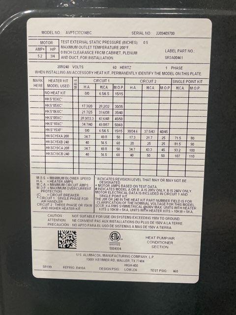 **Compatible Electric Heat Kit Is Not Included (Model# HKSX, HKSC (3-15 KW)**