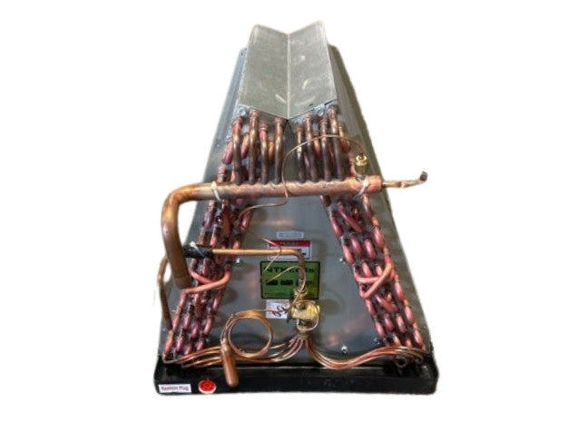 3 toneladas, serpentín A entubado, flujo de aire: horizontal, CFM: 1400, dispositivo de medición: flotador/pistón (0,076), tipo de conexión: condensado, refrigerante: R-410A, tamaño de la conexión: 3/8" x 7/8", bandeja de drenaje: plástico, dimensiones: 21-1/4" de alto x 26" de ancho x 21-1/4" de profundidad, peso: 63, en caja de fabricación, fabricado en EE. UU.