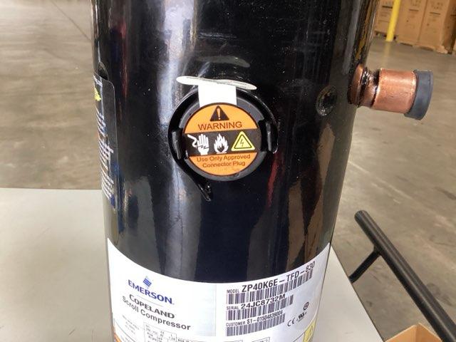 3 Ton AC Scroll Compressor, Volts: 460, Hertz: 60, Phase: 3, Capacity: 39,200 BTU, LRA: 41, Refrigerant: R410A, Oil Type: Polyolester, Connection Size: Liquid-1/2"; Gas-7/8", Connection Type: Sweat, Stage: Single, Height: 16-24/49'' H, Base Dims: 9-10/37'' W X 9-10/37'' D, Weight: 67 lbs