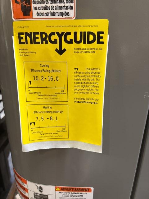 1, Department of Energy Guide SEER2: 16, EER2: 9.8, Stage: Three, Refrigerant: R410A, Connection Size: 3/8"X3/4", Connection Type: Sweat, Factory Charge: 135 oz, Type: Air, Dimensions: 35''H x 33-3/4''W x 33-3/4''D, Weight: 198 lbs **Compatible With Econet Enabled Units**