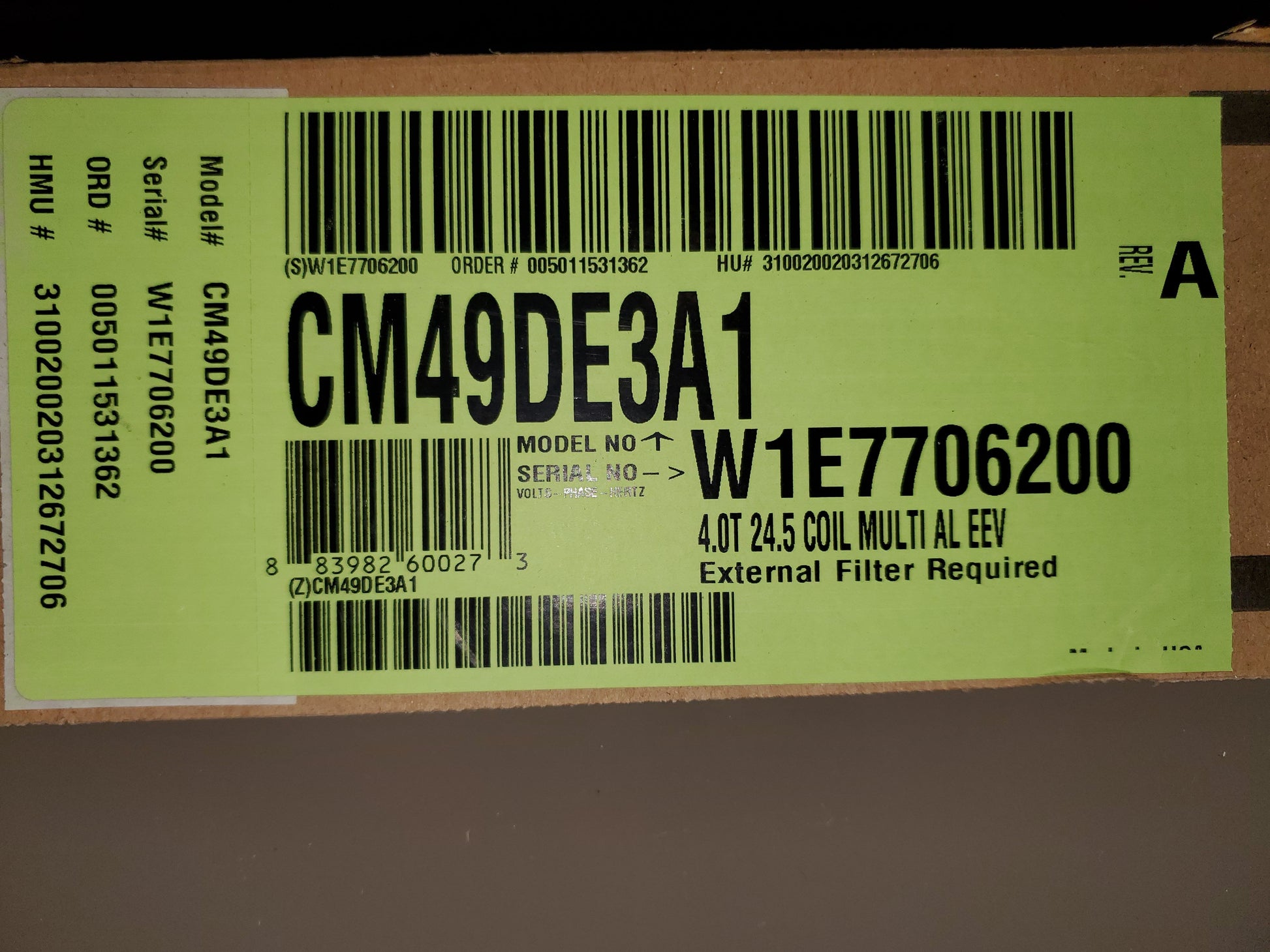 Serpentín "A" de aluminio con carcasa de múltiples posiciones para aire acondicionado/HP de 4 toneladas, serie "CM", flujo de aire: múltiples posiciones, CFM: 1600, dispositivo de medición: EEV, refrigerante: R-410A, presión de diseño: 500 PSIG, tamaño de conexión: 3/8" x 7/8", tipo de conexión: soldada, bandejas de drenaje: plástico/metal, dimensiones: 32-3/4" de alto x 24-1/2" de ancho x 21-1/2" de profundidad, peso: 81 libras, en caja de fabricación, fabricado en EE. UU.