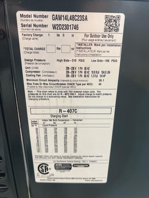 4 ton LX Series Split-System Non-Communicating Air Conditioner, Volts: 208-230, Hertz: 60, Phase: 1, SEER: 14, Refrigerant: R-407C, Factory Charge: 1 lb 0 oz, Design Pressure High/Low: 319 lbs/166 lbs, Type: Air Source, Connections: 3/8" x 7/8" Sweat, Dims: 39-1/2"H x 38"W x 34-1/4"D, Weight: 200 lbs, In Mfg Box, Made In USA