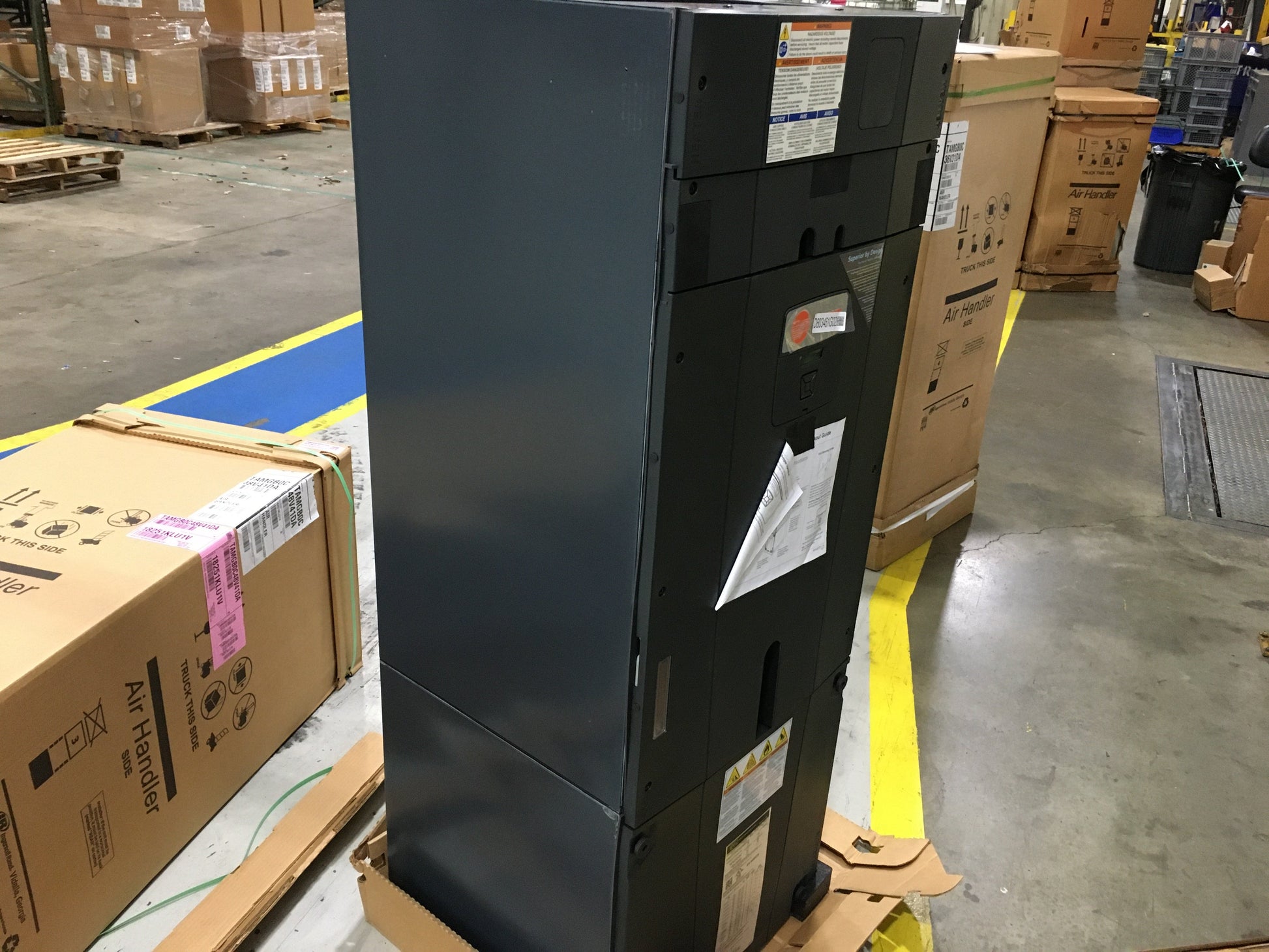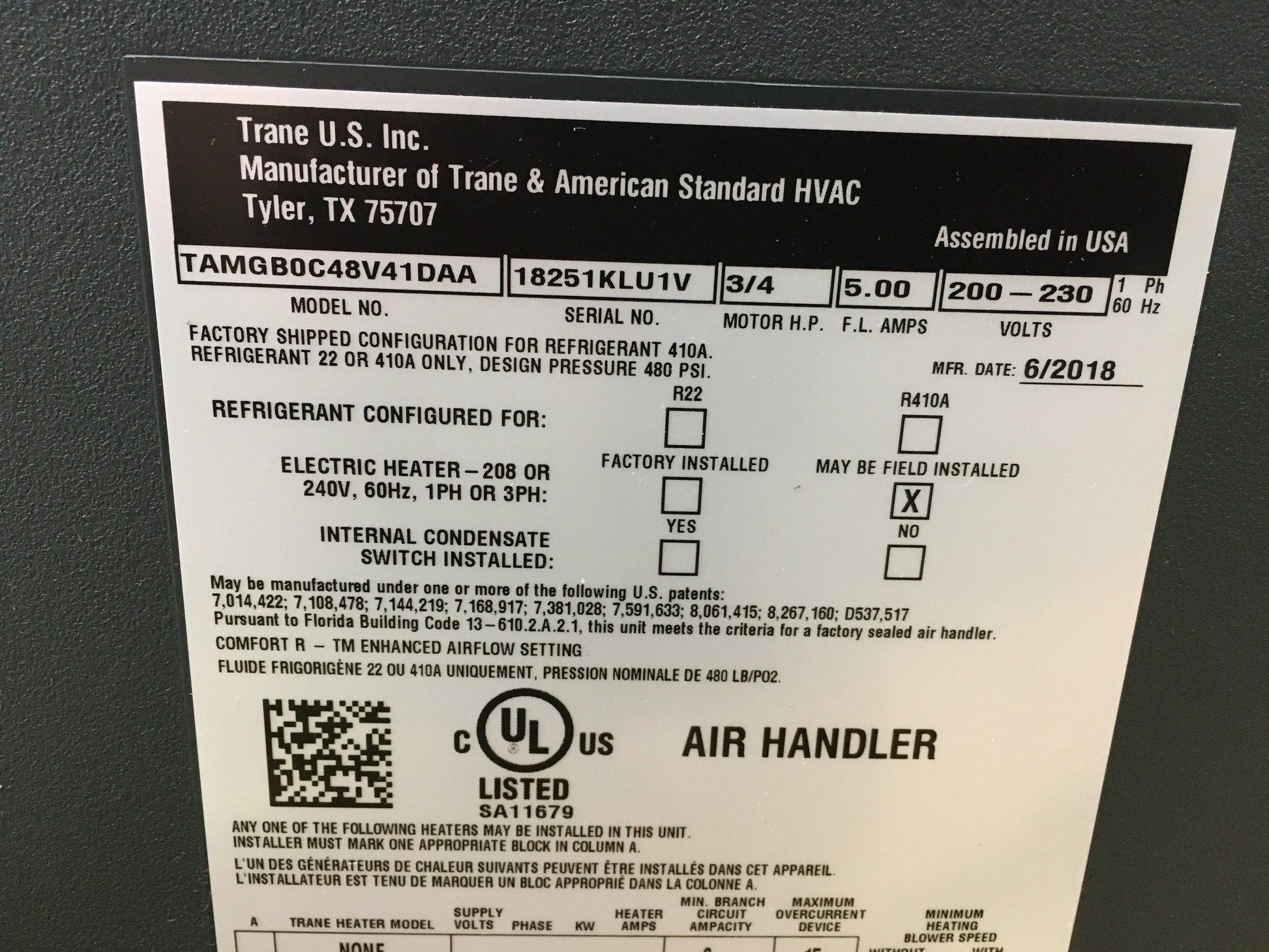 Aire acondicionado/calefacción con ventiloconvector multiposición de 4 toneladas, motor ECM de velocidad variable, voltaje: 208-230, hercios: 60, monofásico, refrigerante: R-410A, dispositivo de medición: EEV, SEER: 20, tipo: fuente de aire, CFM: 600-1800, sin comunicación, dimensiones: 51,5" de alto x 23,5" de ancho x 21" de profundidad. Conexiones: 3/8" x 3/4". Peso: 146 lb. Kits de calefacción compatibles: Bayeaa (no incluidos). Ensamblado en EE. UU.