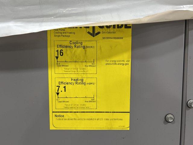 4 Ton Two Stage Convertible Packaged Heat Pump Unit, Volts: 208-230, Hertz: 60, Phase: 1, Refrigerant: R410A, Factory Charge: 12 lbs 4.8 oz, EER2: 12, Department of Energy Guide SEER2 (Range): 16, CFM: 2000, Overall Dims: 41-3/8''H X 74-3/8''W X 46-5/8''D, Weight: 590 lbs ***Compatible Heat Kit: CRHEATER3(23-31)A00 (Not Included)***