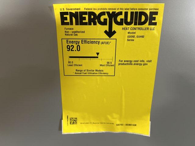 44,000 BTU Downflow Gas Furnace, Efficiency: 92.1%, Volts: 120, Hertz: 60, Phase: 1, CFM: 1500, Stage: Single, Speed: Multi, Motor Type: PSC, BTU Input: 44,000, BTU Output: 42,000, Dimensions: 33''H X 17-1/2''W X 28-1/2''D, Weight: 124 lbs ***Propane Conversion Kit: 11K50 (Not Included)***