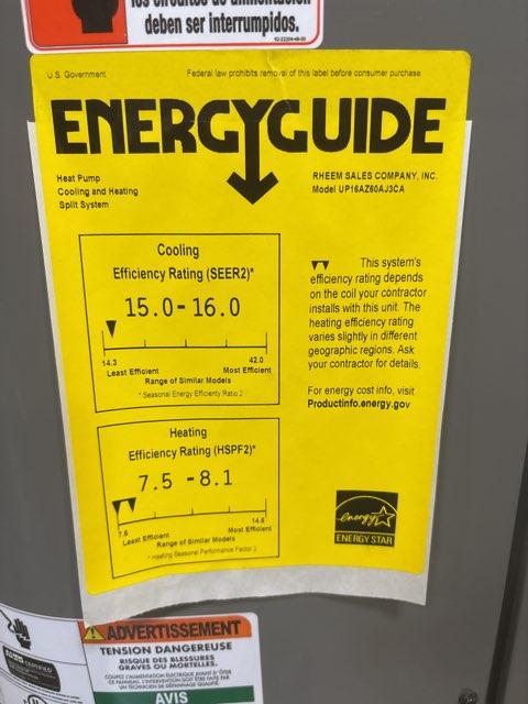 1, Department of Energy Guide SEER2: 16, EER2: 9.8, Stage: Three, Refrigerant: R410A, Connection Size: 3/8"X7/8", Connection Type: Sweat, Factory Charge: 256 oz, Type: Air, Dimensions: 45''H x 35-3/4''W x 35-3/4''D, Weight: 307 lbs **Compatible With Econet Enabled Units**
