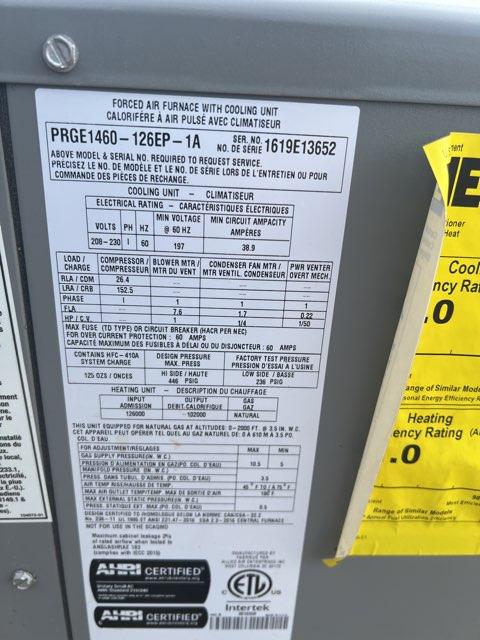 HORNO A GAS NATURAL DE 60 000 BTU, FLUJO DE AIRE ASCENDENTE/HORIZONTAL, EFICIENCIA: 96 %: 115/60/1, 1200 CFM, MOTOR ECM DE 1 ETAPA Y 9 VELOCIDADES, ENTRADA DE 60 000 BTU, SALIDA DE 57 600 BTU, DIMENSIONES: 34,5" DE ALTO X 17,5" DE ANCHO X 29" DE PROFUNDIDAD, DIMENSIONES DE APERTURA DE PLENUM: 16" X 19,5", PESO: 120 LB, FABRICADO EN EE. UU., EN CAJA DE FABRICACIÓN