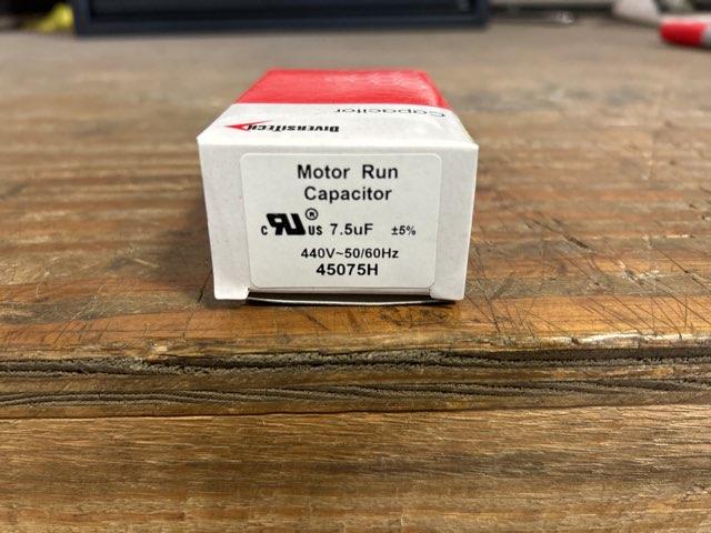 7.5 MFD X 440 VAC Dual Run Capacitor, Single Capacitance, Shape: Oval, Dims: 2.17"Hx2.17"Wx1.38"L