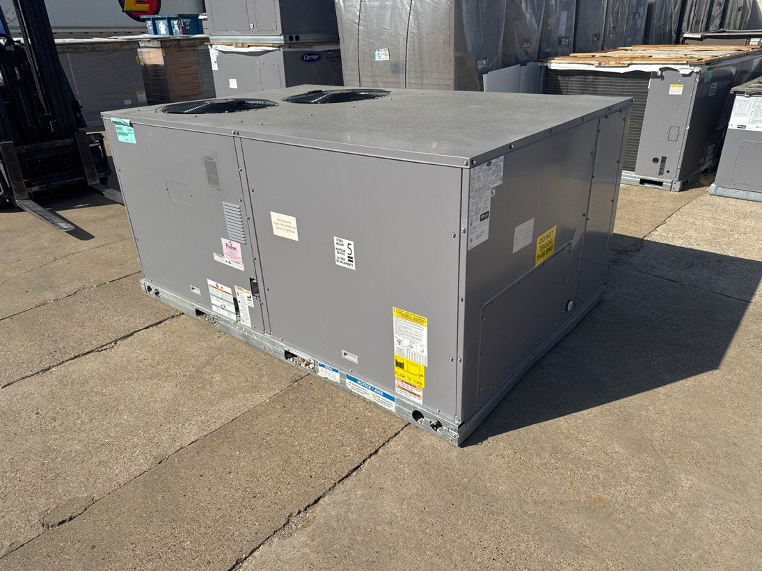 7.5 Ton Two Stage Convertible Natural Gas/Electric Packaged Unit, Volts: 460, Hertz: 60, Phase: 3, Refrigerant: R410A, Factory Charge: 13 lbs 3 oz, EER: 11.2, CFM: 3750, BTU Input: 125,000, BTU Output: 103,000, Cooling BTU: 86,000, Heating BTU: 125,000, Overall Dims: 41-1/4''H X 88-1/8''W X 59-1/2''D, Weight: 787 lbs
