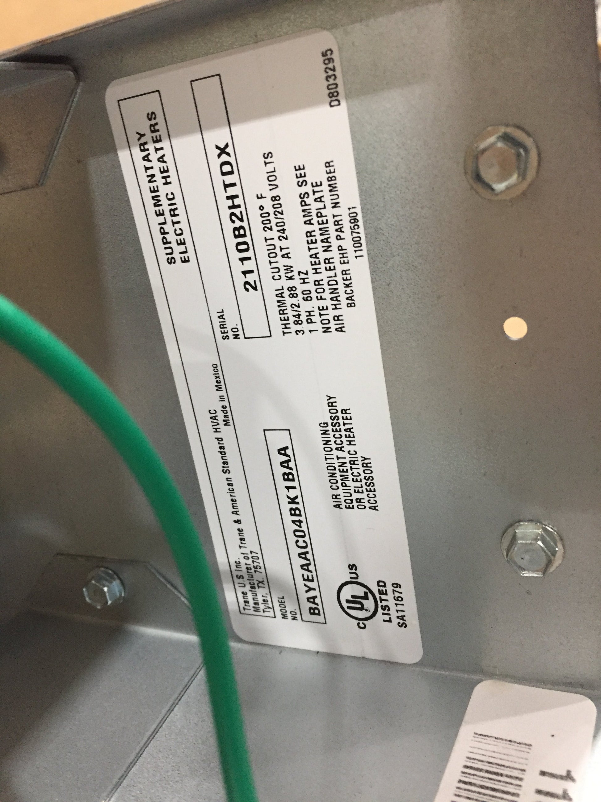 4 KW Electric Heat Kit With Breaker, Voltage:208-240, Hertz:60, Phase:1, Weight:10 Lbs, Dims:8"H 18"W 25"D, In Mfg Box, Origin: USA