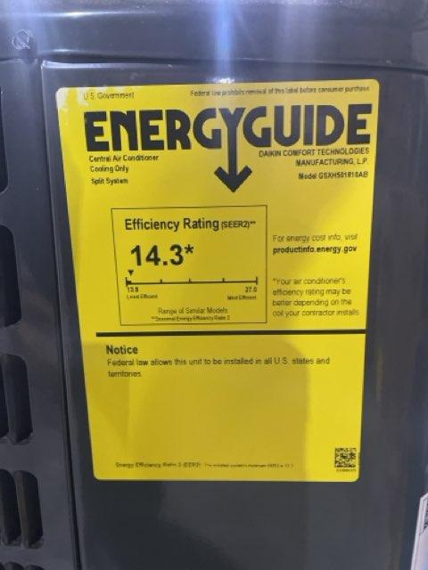**MINOR DENT IN LOWER SIDE OF UNIT, NO COIL OR FIN DAMAGE**