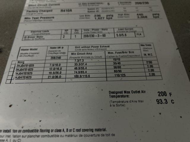 5000, Refrigerant: R-410A, Motor Type: ECM, Metering Device: TXV, Connection Size: Suction-1-1/8", Liquid-5/8", Type: Air Source, Dimensions: 65''H X 30''W X 56''D, Weight: 565 lbs ***Compatible Heat Kits: 2HJ047(010-036)25 (not included)***