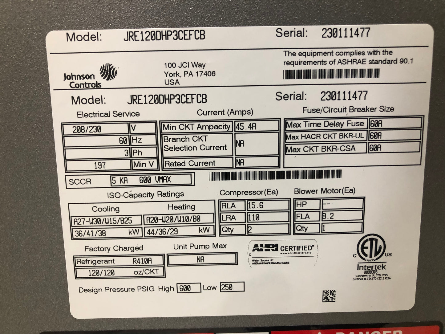3, Refrigerant: R-410A, Factory Charge: 120 Oz, Cfm: 4000, Return Dims: 39 X 21", Supply Dims: 37" X 19", Overall Dims: H-46" W-49" L-90", Weight: 1080Lbs, Bulk Packaging, Made in USA"