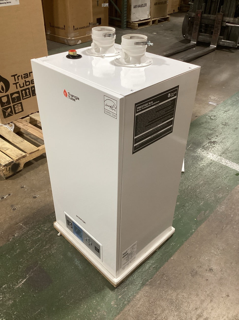 110,000 BTU Hot Water Gas-Fired Boiler Category: Condensing Natural Gas, Voltage: 120, Hertz: 60, Phase: 1, Efficiency: 95%, Input BTU: 110,000, Output BTU: 104,500, Gas Connection Size: 1/2", Water Volume (Gallons): 2.1, Mounting Type: Wall-mounted, Dimensions: 36-9/16''H x 17-5/16''W x 19-3/4''D, Weight: 103 lbs ***Propane Conversion Kit (Included)***