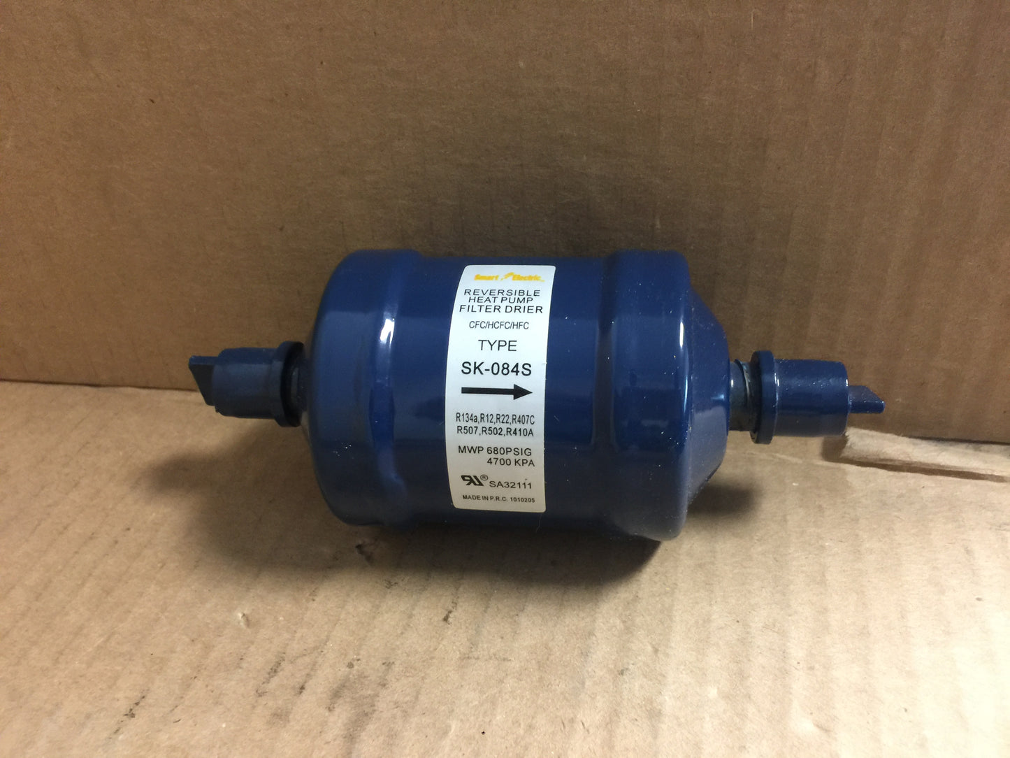 1/2" LIQUID LINE REVERSIBLE HEAT PUMP FILTER DRIER; FOR USE WITH REFRIGERANTS: R134A, R12, R22, R407C, R507, R502, R-410A, MWP 680 PSIG, DIMENSIONS: H-2.5", W-2.5", L-5", WEIGHT: 1.5LBS, MFG BOX, MADE IN P.R.C