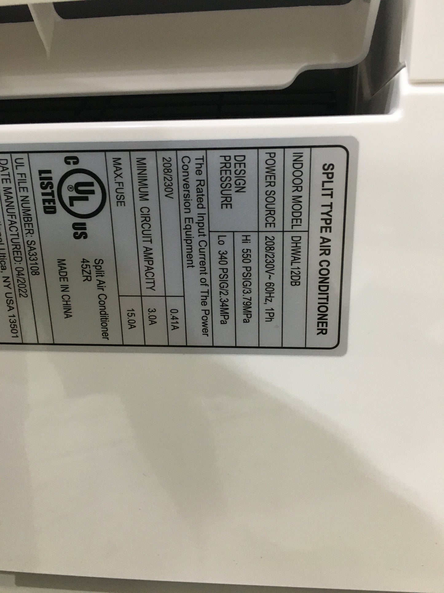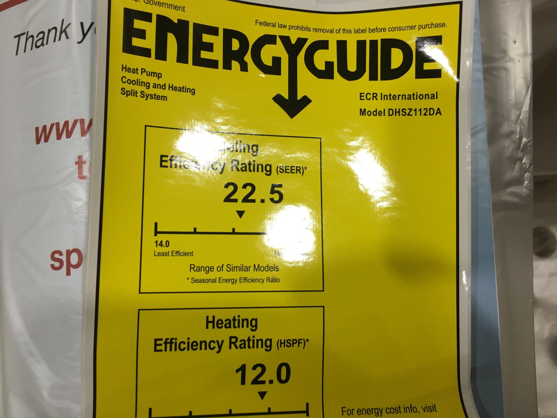12,000 BTU Single Zone Variable Speed Inverter Mini Split Heat Pump Set, Volts:208-230, Hertz:60, Phase:1, Department Of Energy Guide SEER:22.5, EER:13, Refrigerant: R-410A, Factory Charge:52.9, Connection Size:1/4" X 1/2", Connection Type:Flare, Design Pressure High/Low:340/550, Cooling BTU's:12,000, Heating BTU's:11,740, Outdoor Dimensions:21"H X 33 1/2"W X 13"D, Indoor Dimensions:11 1/4"H X 33 1/2"W X 9"D, Weight:135 Lbs, In Mfg Box, Made In PRC (Sold As Set) Remote Included