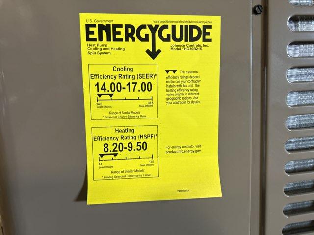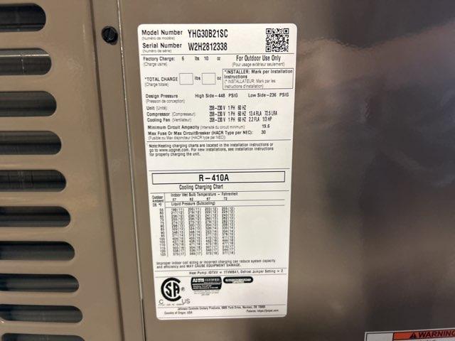 2.5 ton split-system heat pump, Circuit Voltage: 208-230, Hertz: 60, Phase: 1, Department of Energy Guide SEER: 16, Stage: single, Refrigerant: R410A, Connection Size: 3/8" x 3/4", Connection Type: sweat, Factory Charge: 8 lbs 9 oz, Type: air, Dimensions: 39-1/2"H x 35-1/4"W x 31-3/4"D, Weight: 175 lbs **Minor cosmetic damage, small dent on side of unit at the bottom**