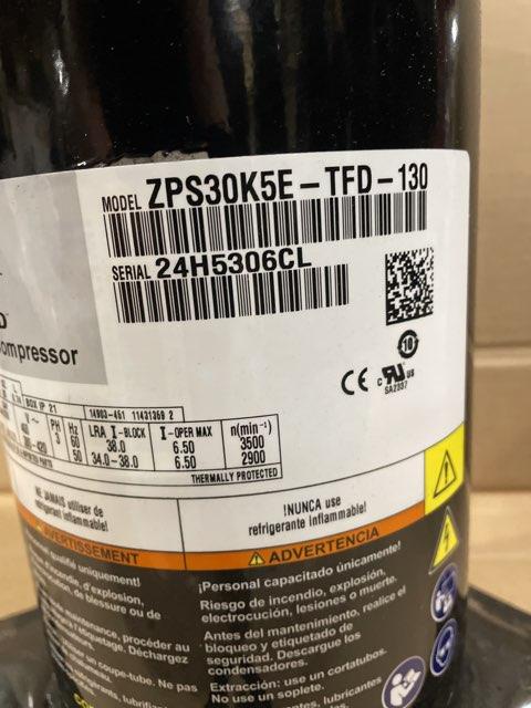 2.5 Ton AC Scroll Compressor, Volts: 380-460, Hertz: 50-60, Phase: 3, Capacity: 30,600 BTU, LRA: 38, Stage: Two, Refrigerant: R410A, Oil Type: Polyolester, Connection Size: Liquid-1/2"; Gas-3/4", Connection Type: Sweat, Height: 15-3/10'' H, Base Dims: 9-7/10'' W X 9-7/10'' D, Weight: 49.6 lbs